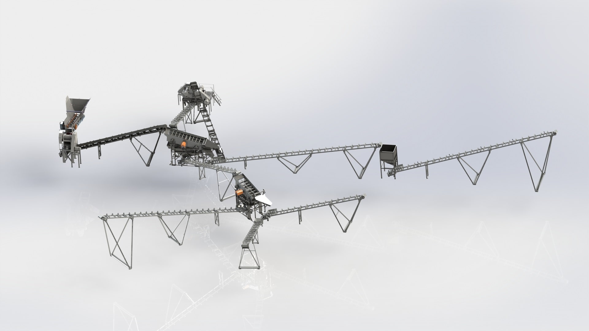 Еще один немаловажный этап — это решение о размерах и форме конечных изделий. Этот этап придает дизайн дробильно-сортировочной установке. Согласно этой информации решается схема и порядок оборудования. Определяется количество грохотов и их видов, количество конвейеров, тип подходящей дробилки и их расположение.